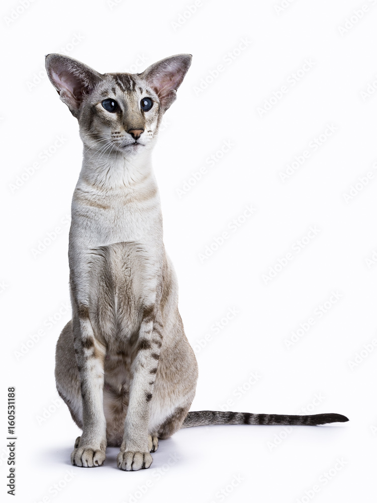 Adult Siamese Cat Sitting Straight Up On A White Background Looking To The Side Stock Photo Adobe Stock